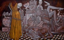 Die Malerin Alex Tennigkeit (1976) beschäftigte sich in ihren letzten Ausstellungen mit den Codes der heutigen Hip-Hop-Kultur. Mit großformatigen Leinwände, ornamentalen Wandarbeiten, Objekten und kleinformatigen Gouachen installiert sie begebare Räume, die jene Welt der Populärkultur abbilden und überzeichnen. Sie bearbeitet Bild- und Textzitaten aus der populären Film-, Musik-, Mode- und Werbeszene und bedient sich dort, wo die Medienwelt am oberflächlichsten ist. Nackte Körper, lächelnde Beauties, schnelle Autos und andere Symbole der modernen Popkultur finden hier ihren Platz, die Tennigkeit mit dem Mitteln des Samplings in ihrer Kunst überspitzt und entlarvt.
