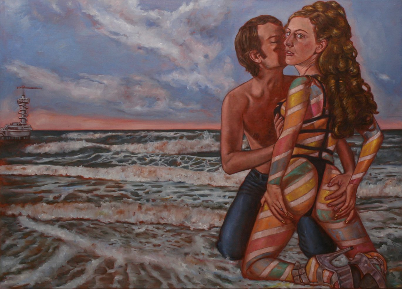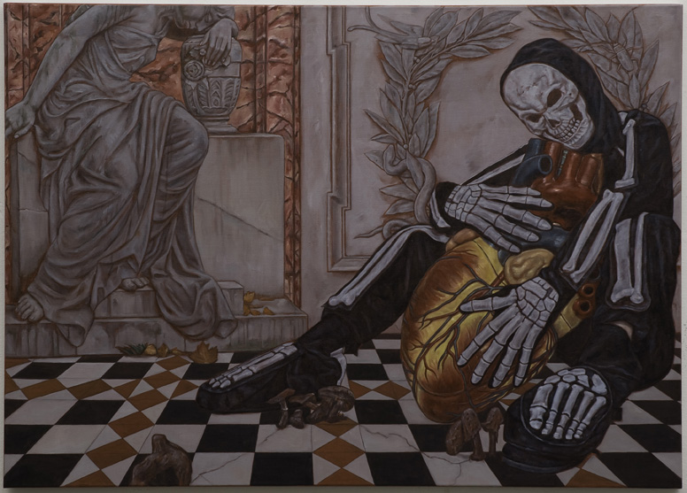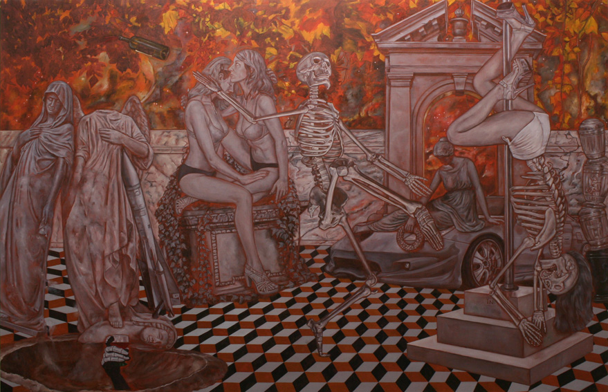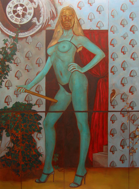 Die Malerin Alex Tennigkeit (1976) beschäftigte sich in ihren letzten Ausstellungen mit den Codes der heutigen Hip-Hop-Kultur. Mit großformatigen Leinwände, ornamentalen Wandarbeiten, Objekten und kleinformatigen Gouachen installiert sie begebare Räume, die jene Welt der Populärkultur abbilden und überzeichnen. Sie bearbeitet Bild- und Textzitaten aus der populären Film-, Musik-, Mode- und Werbeszene und bedient sich dort, wo die Medienwelt am oberflächlichsten ist. Nackte Körper, lächelnde Beauties, schnelle Autos und andere Symbole der modernen Popkultur finden hier ihren Platz, die Tennigkeit mit dem Mitteln des Samplings in ihrer Kunst überspitzt und entlarvt.