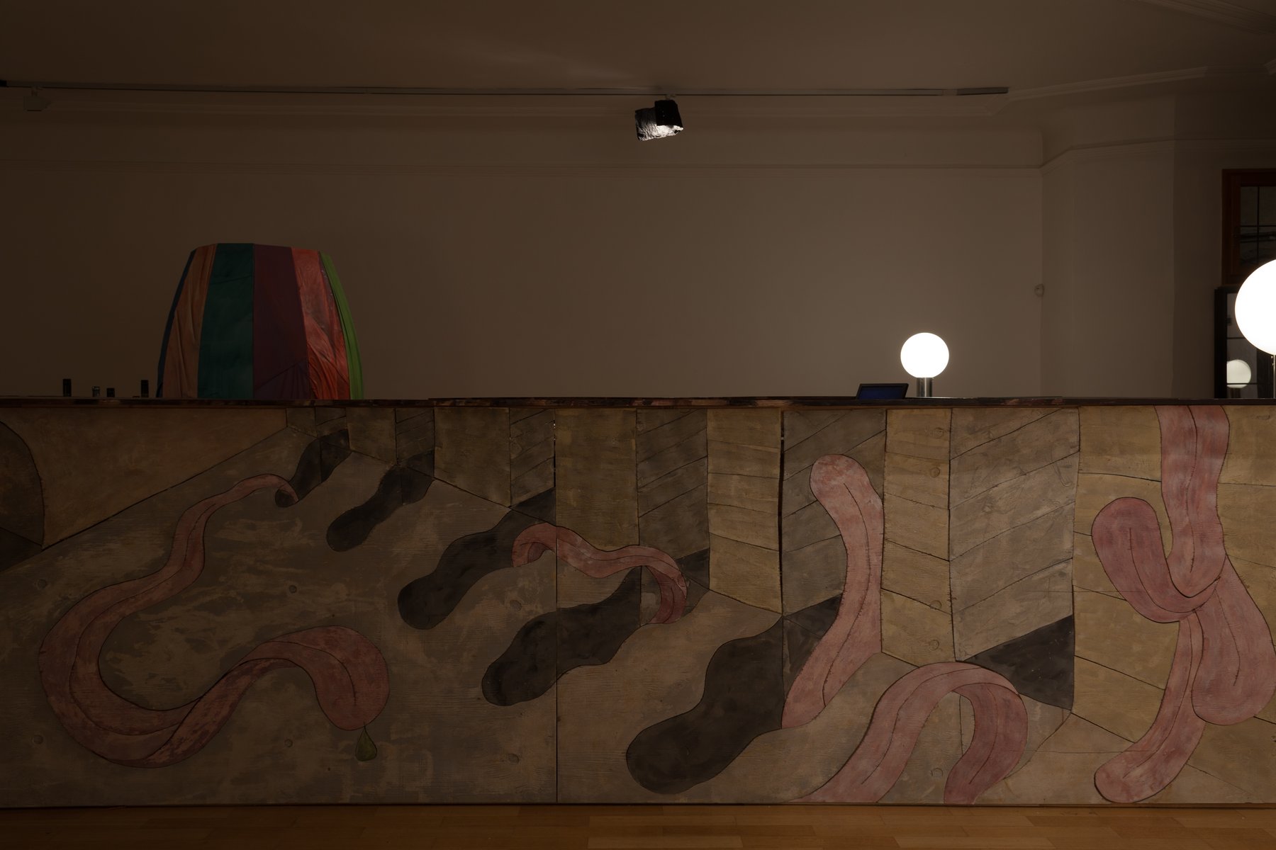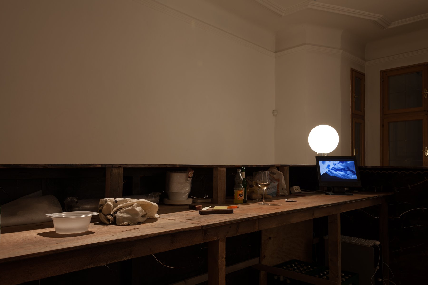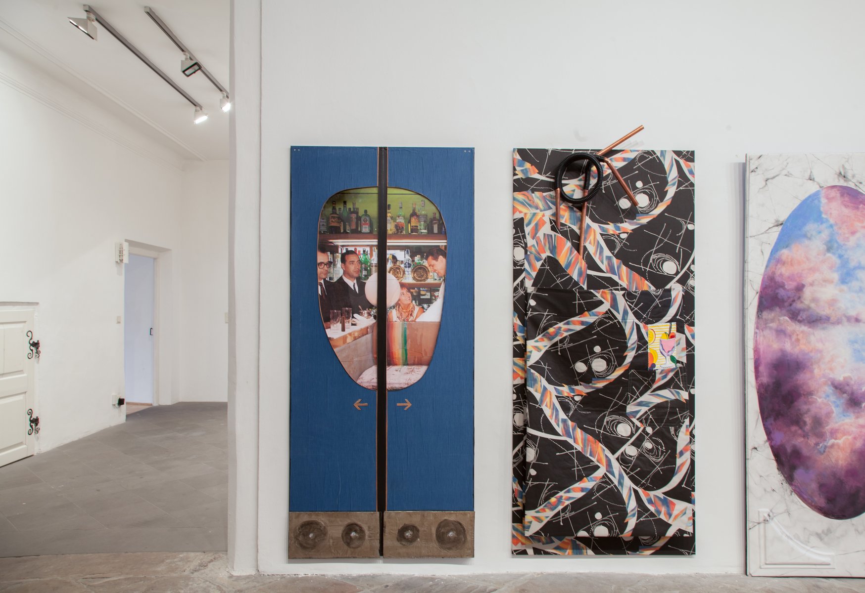 Das Projekt, das Bar du Bois für die Galerie der Stadt Schwaz konzipiert hat, wird ihre Wanderschaft fortsetzen und zugleich formal steigern. In Schwaz wird die Bar nicht wie bisher Teil einer Ausstellung sein, sondern den Galerieraum von zahlreichen Seiten überformen. Dies beginnt schon bei den Türgriffen der Eingangstüre, auf die neue Griffe in Form von Getränkekarten montiert werden. Die Bar selbst ist in ihren Dimensionen raumgreifend und funktioniert gleichzeitig wie ein Bilderfries. Auch die weiteren Räume der Galerie werden einbezogen und der starre White Cube teilweise in einen sozialen Raum transferiert. Die Bruchlinien dazwischen werden allerdings in der Ausstellung sichtbar bleiben. Es geht nicht um eine Totalgestaltung oder eine „Fake“-Inszenierung, die die Grenzlinien übertüncht. Alle Arbeiten darin lassen sich sowohl als Kunstwerke als auch als funktionale Bestandteile der Bar lesen: Türen, Hocker, Bänke, Lampen, Gläser, Aschenbecher, Flaschenöffner, Regale. Hierfür werden auch Aufträge an andere KünstlerInnen vergeben, die zu neuen Kunstwerken und Barbestandteilen führen. So entsteht beispielsweise aus gedrechselten Flaschenöffner-Skulpturen von Roy Culbertson ein dekorartiger Rahmen um die Türen des Galerie Hauptraumes, der ebenso zum Flaschenöffnen verwendet werden kann.