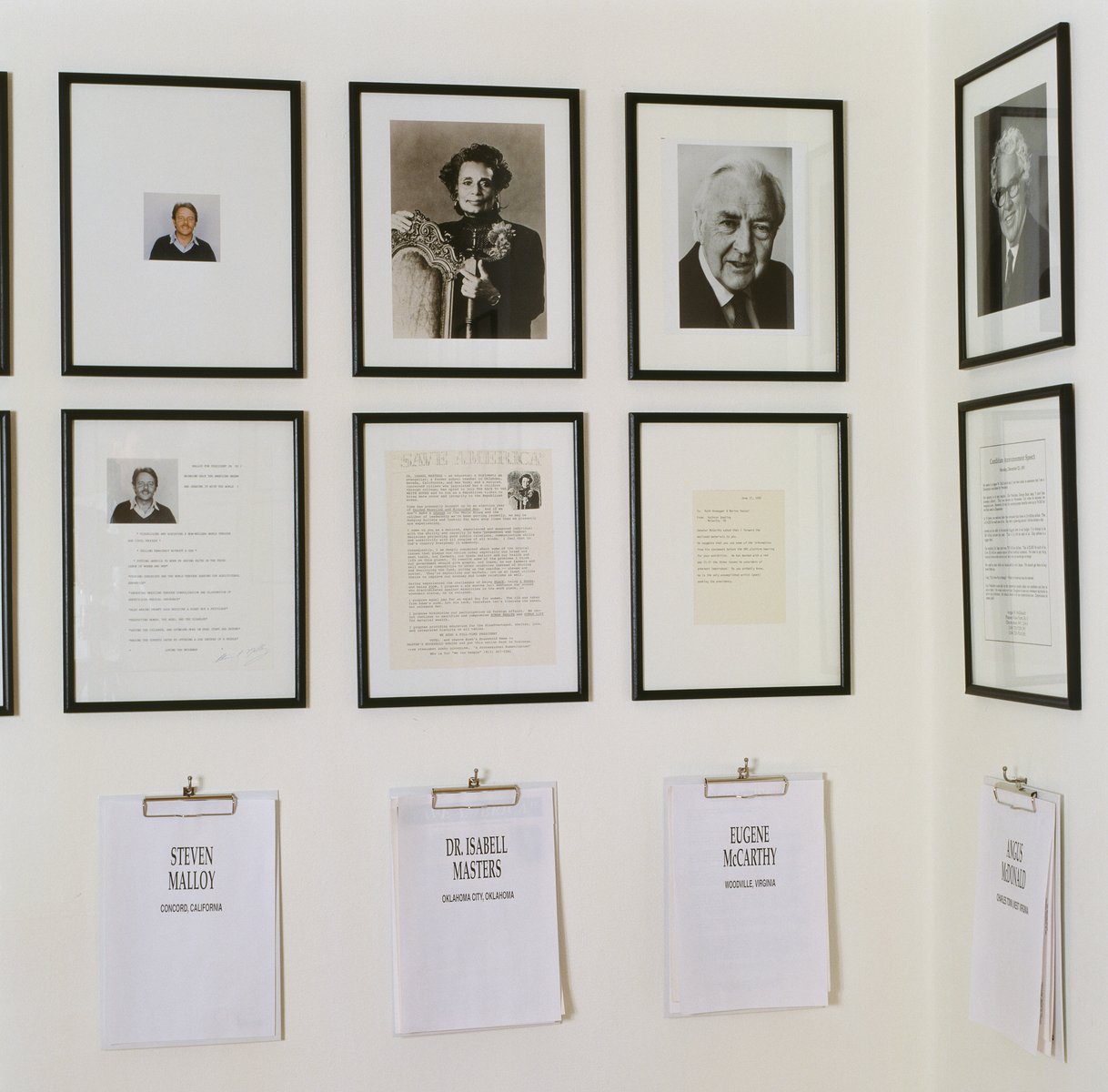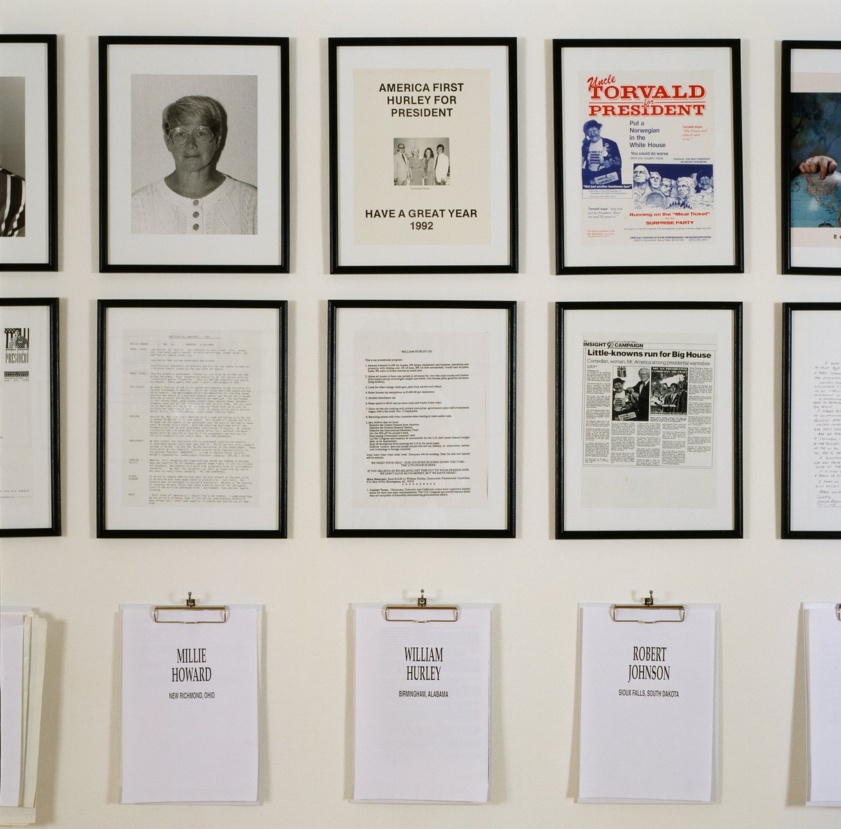 Das Künstlerpaar Ruth Honegger und Marino Pascal, wohnhaft in Los Angeles, hatte Originalunterlagen aller 112 KandidatInnen gesammelt, die sich 1992 für das Amt des Präsidenten der Vereinigten Staaten bewarben.