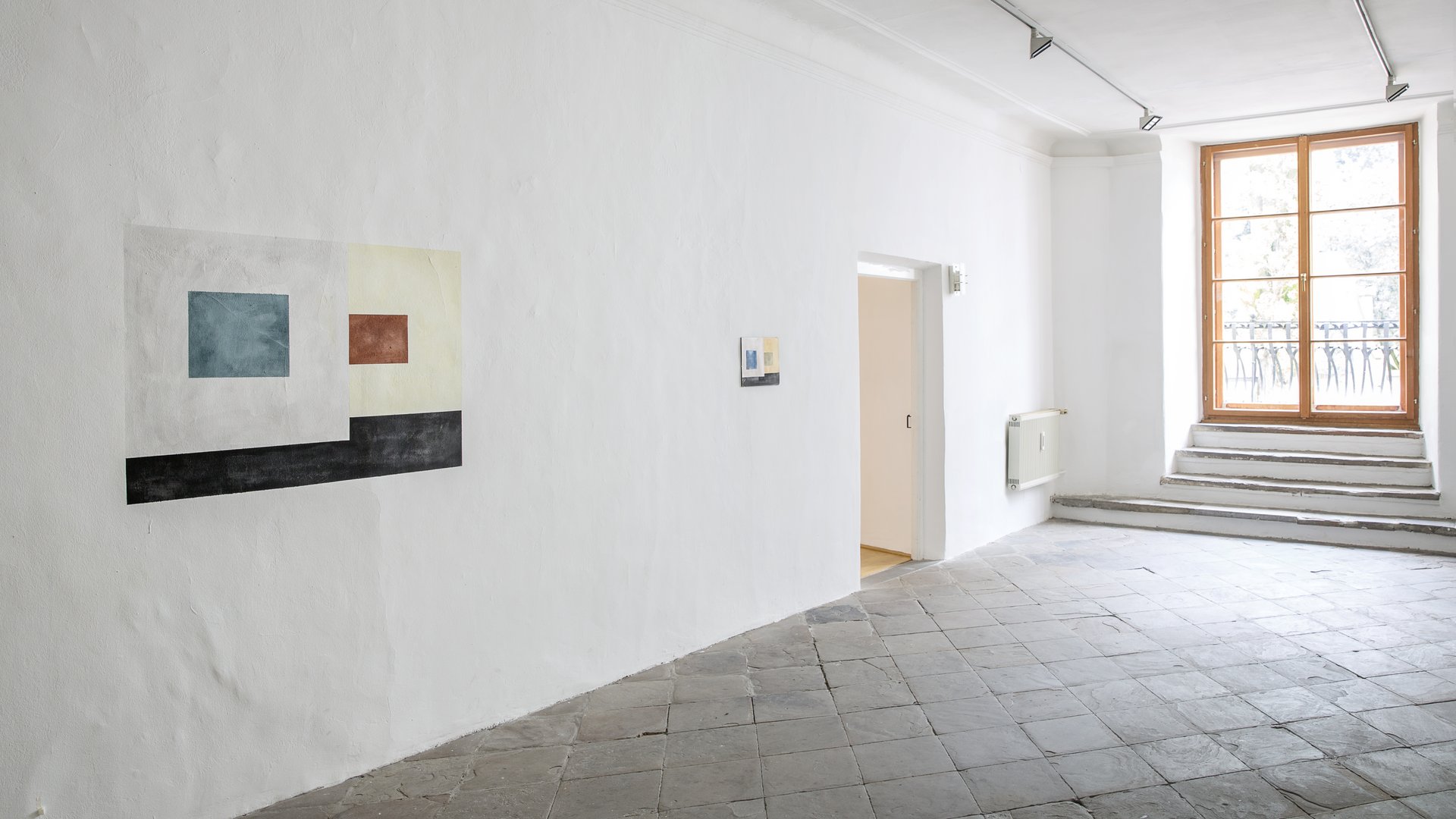 Caramelle zeigt in der Galerie der Stadt Schwaz zwei Serien von „Bildern“, die alle das gleiche Motiv einer Ausstellungssituation zeigen, im Duktus und in der Größe aber stark variieren. Die eine Serie ist auf variierenden Papierformaten ausgeführt, die andere direkt in-situ als Wandmalereien produziert.