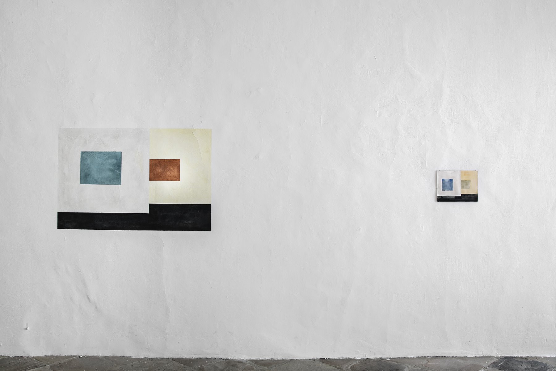 Laut Brian O’Dohertys wegweisendem Essay „Inside the White Cube“ von 1976 sollte sich jeder Künstler zunächst Klarheit über die grundlegenden Auswirkungen der „normalen Ausstellungssituation“ mit ihren weißen Galeriewänden und übrigen Konventionen auf seine Werke verschaffen. Ernst Caramelle entschied sich früh dafür, direkt mit diesen Wänden zu arbeiten. Mit seinen raumgreifenden Wandmalereien transformiert er den Raum in ein Bild aus Farbflächen, die buchstäblich ausgewaschen werden. Sichtbar wird dies allerdings erst im meist menschenleeren „Gallery shot“, den O’Doherty als eine Ikone des 20. Jahrhunderts bezeichnete. In Zeiten von Instagram und Contemporary Art Daily hat diese Beobachtung nicht an Aktualität verloren. Bei Ernst Caramelle schauen die Ausstellungsfotos ganz ähnlich wie seine kleinformatigen „Gesso Pieces“ aus. Das sind Papierarbeiten mit abgewaschener Wasserfarbe, die er als „Quasi Malerei“ bezeichnet.