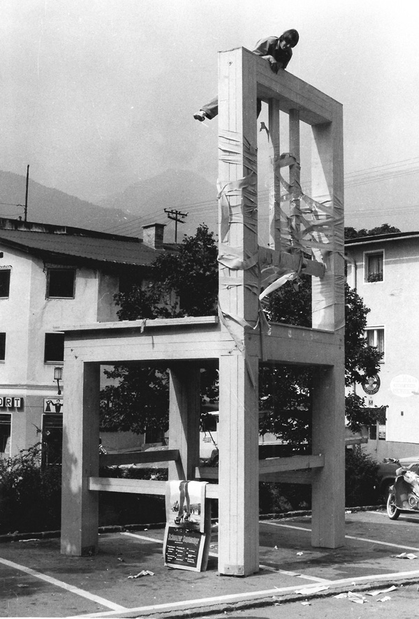 Das Thema „Sound“ ist in der Stadt Schwaz schon seit langem erstaunlich präsent. Bereits in den späten 1950er Jahren wurde mit dem „Studio 12“ ein avancierter Jazz- und Underground Club eingerichtet, der laut damaliger Pressemeldung für „moderne Ein- und Ansichten“ stand, was deutlich macht, dass es dabei selten nur um akustische oder musikalische Phänomene, sondern auch um gesellschaftlichen Aktivismus ging. Bereits In den 1960er Jahren folgten interdisziplinäre „Jazz-Tage“, die in den 1970er Jahren in das Festival „Schwazer September“ umbenannt wurden. Zu den besonders aktionistischen Sound-Events gehörten das „Gipfelkonzert auf dem Gschöllkopf“ – das sogar im Guinness-Buch der Rekorde vermerkt wurde – oder der überdimensionale Riesensessel, der als „Schwazer Kultursessel“ als Bühne für Live-Auftritte im Stadtraum gedacht war. Dass Musik und deren inhaltliche Ausrichtung dabei als eine Form der Gegenkultur und Gegenöffentlichkeit zur herrschenden traditionellen Kultur verstanden wurde, war offensichtlich. Wie aggressiv diese wiederum darauf reagierte, zeigte der Abriss des Kultursessels noch in der ersten Nacht.
