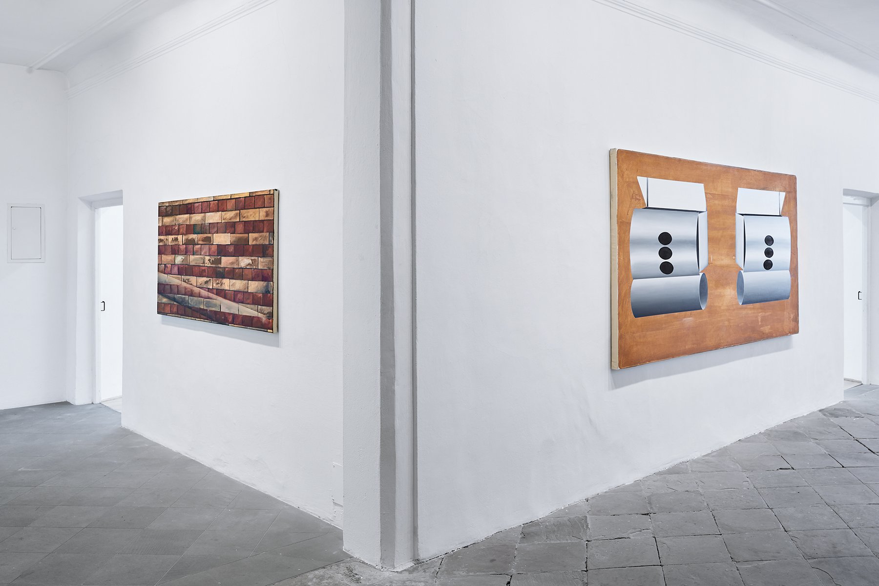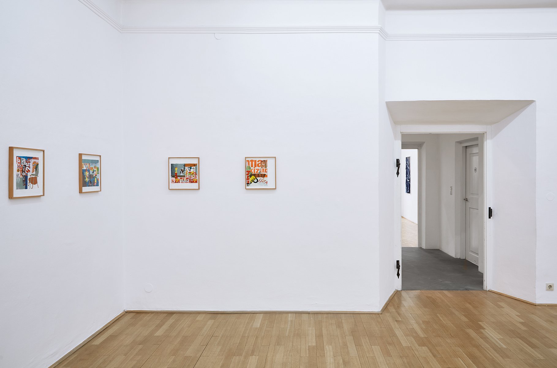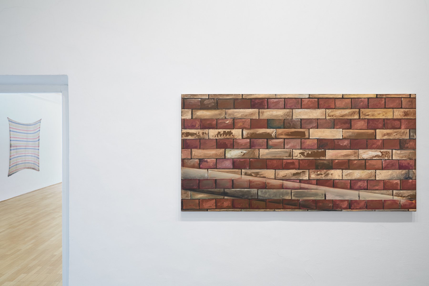 Die Ausstellung stellt vier Künstlerinnen und Künstler vor, die mit unterschiedlichen Mitteln Bilder produzieren. Ellie de Verdiers Arbeiten beispielsweise sind genäht. Sie haben ebenso einen Bezug zur Fotografie wie zur Malerei und schalten zwischen tatsächlicher und dargestellter Dreidimensionalität hin und her. Milena Büsch übermalt ganze Seiten eines Katalogs eines bekannten Kollegen und betitelt diese Serie mit: „Für andere die Arbeit machen“. Demian Kerns Bilder dagegen greifen auf direktere Situationen zu. Sie bilden sehr Unterschiedliches ab, Briefkästen, Rohr mit Mauer, Schachfiguren, Bewegungsmotive und beobachten dabei zur selben Zeit ihre eigene Konstruiertheit. Julian Tromp verwendet Stoffe als Malgrund, deren Gebrauchsspuren er mit indirekten, indexikalischen Gesten akzentuiert.