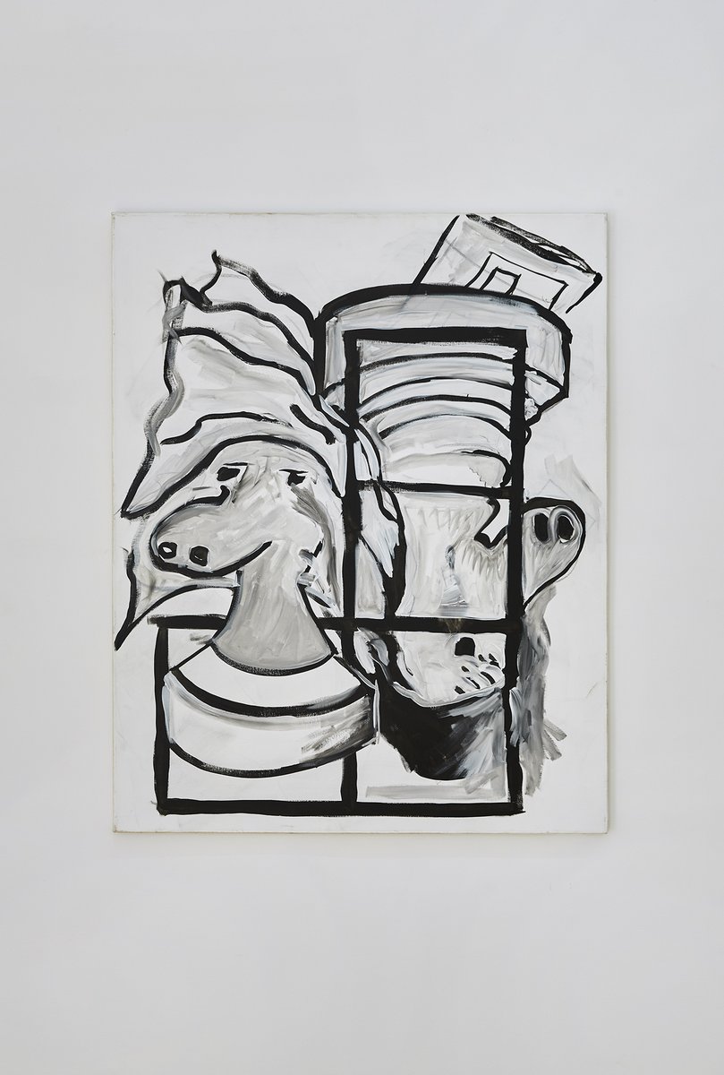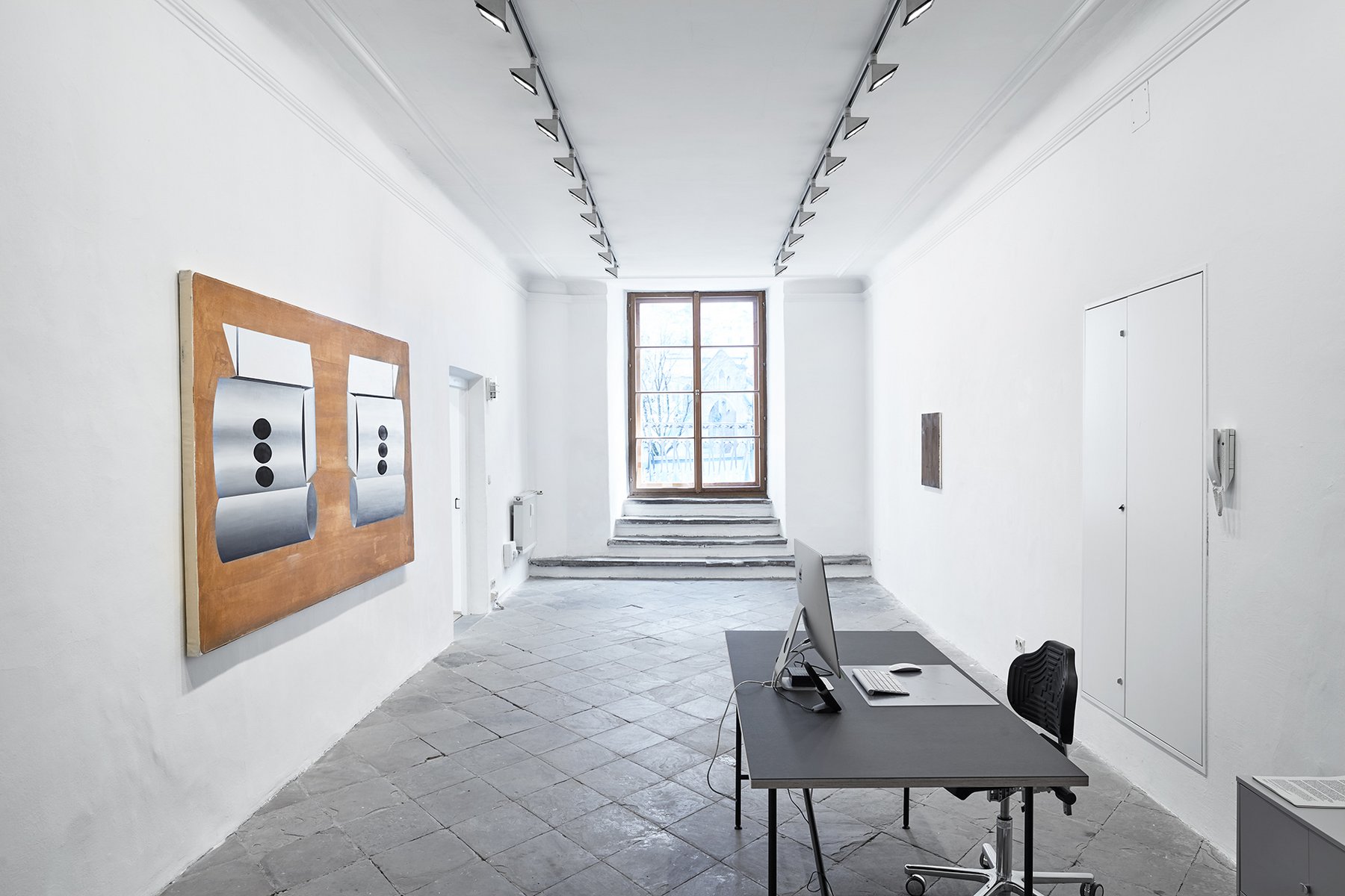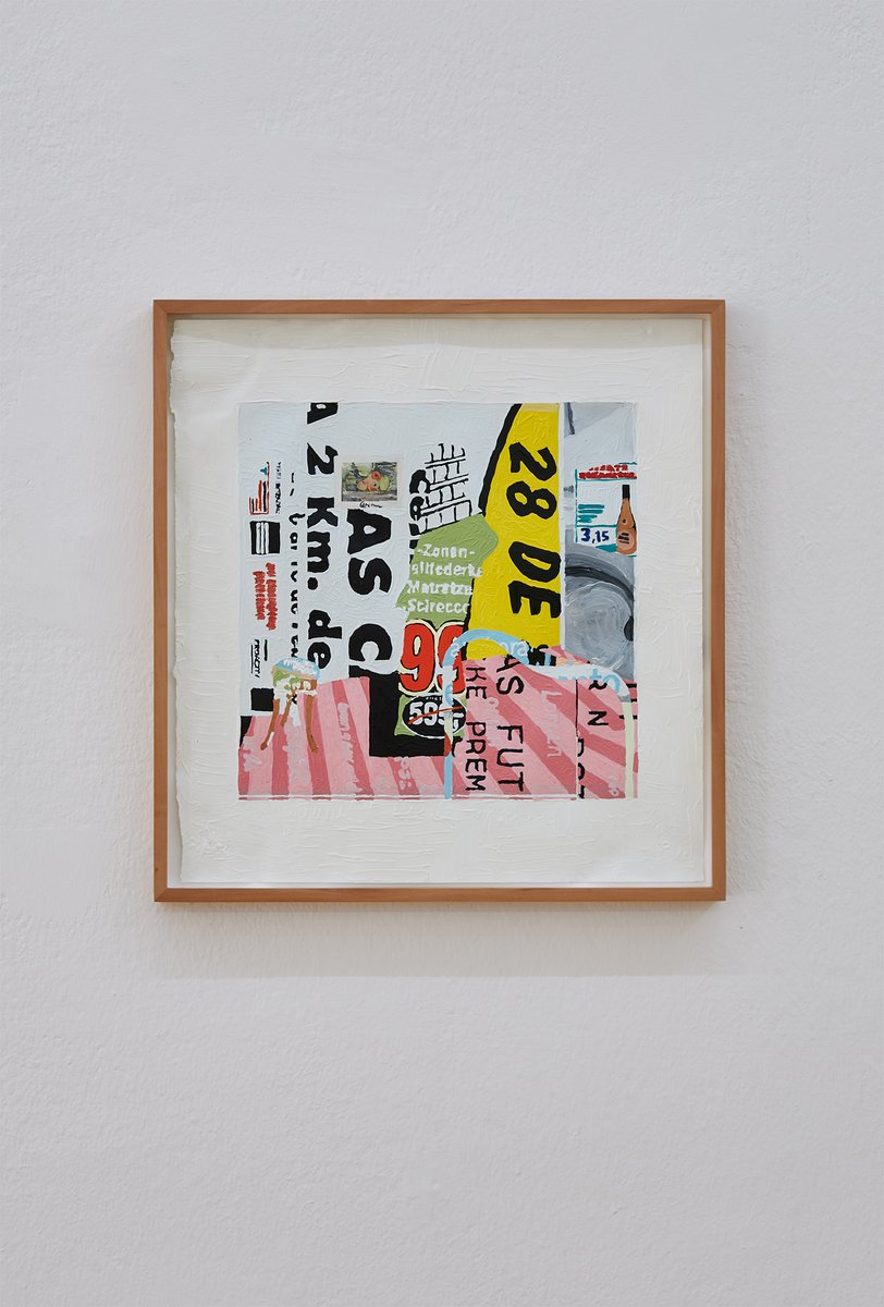 Die Ausstellung stellt vier Künstlerinnen und Künstler vor, die mit unterschiedlichen Mitteln Bilder produzieren. Ellie de Verdiers Arbeiten beispielsweise sind genäht. Sie haben ebenso einen Bezug zur Fotografie wie zur Malerei und schalten zwischen tatsächlicher und dargestellter Dreidimensionalität hin und her. Milena Büsch übermalt ganze Seiten eines Katalogs eines bekannten Kollegen und betitelt diese Serie mit: „Für andere die Arbeit machen“. Demian Kerns Bilder dagegen greifen auf direktere Situationen zu. Sie bilden sehr Unterschiedliches ab, Briefkästen, Rohr mit Mauer, Schachfiguren, Bewegungsmotive und beobachten dabei zur selben Zeit ihre eigene Konstruiertheit. Julian Tromp verwendet Stoffe als Malgrund, deren Gebrauchsspuren er mit indirekten, indexikalischen Gesten akzentuiert.