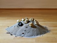 “Charisma aus dem Jahr 1991, arbeitet mit der Gegensätzlichkeit von ‘armen’ Materialien und dem Titel Charisma - jener Strahlkraft, die uns zugeschrieben wird, und bezieht sich mit dem Entstehungsjahr auf den Ersten Golfkrieg.