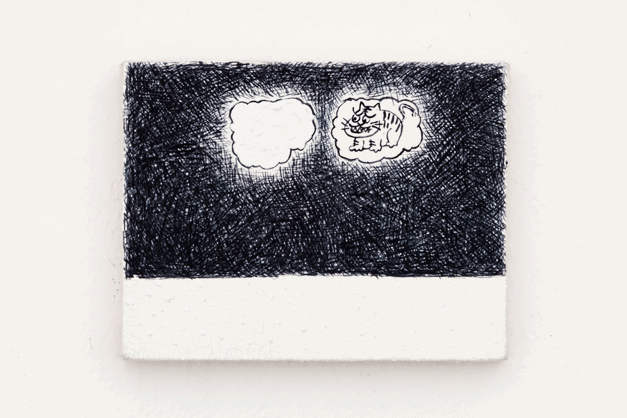 Die Ausstellungsräume selbst sind geprägt durch überdimensionale Blattimitationen als Bodenarbeiten. Zusätzlich zeigt Min Yoon einen mit Text bedruckten Bleistift, die neben kleine Ölmalereien in den Wänden der Galerie stecken