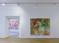 In der Ausstellung ‚On Heat’ kommentiert und paraphrasiert Lucy Stein Ideen und Klischees des ‚Schöpferischen’ im Kunstkontext. In den Arbeiten, die für den Eröffnungstermin vor Ostern entstanden sind, greift sie auch auf Motive und Formen zurück, die mit dem Osterfest verbunden sind - wie das Ei oder die Tradition der textilen Altarverhängungen sowie Heiligendarstellungen.