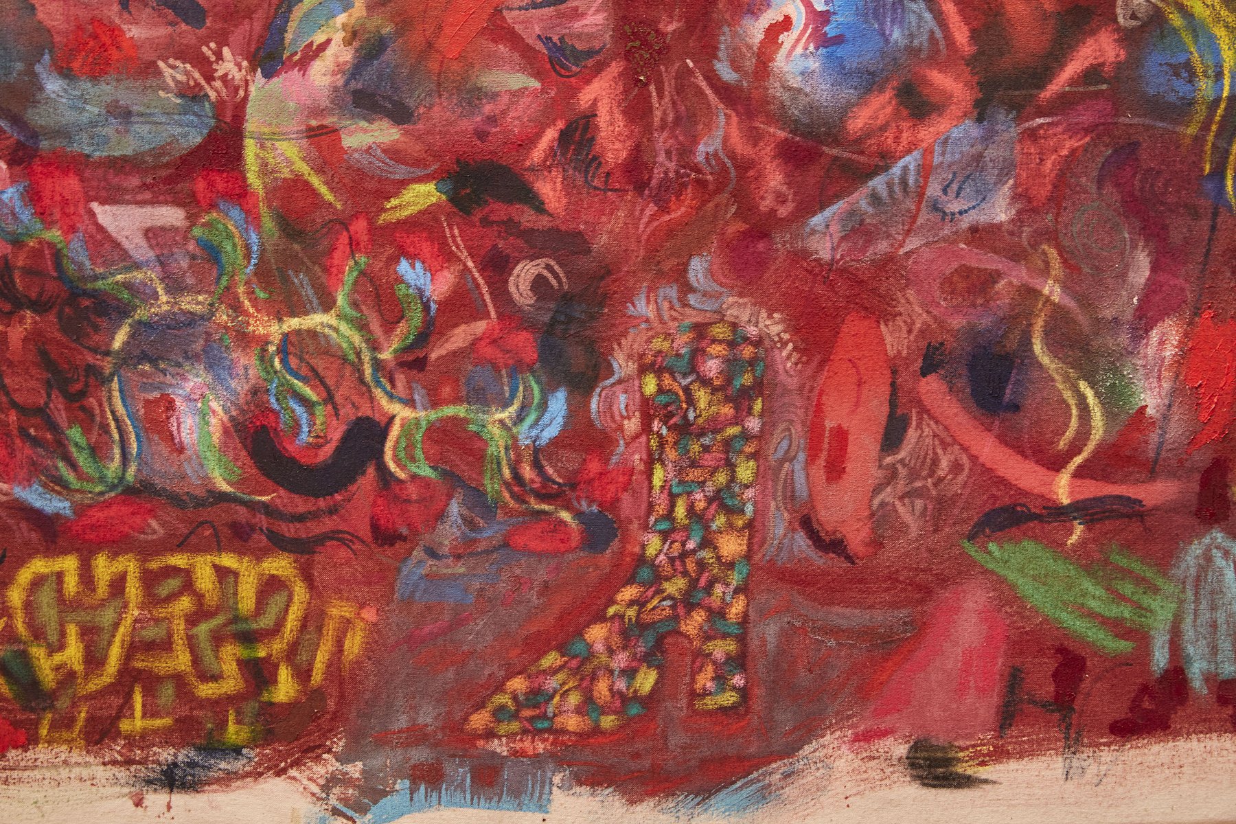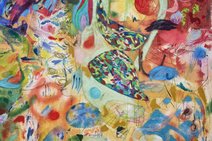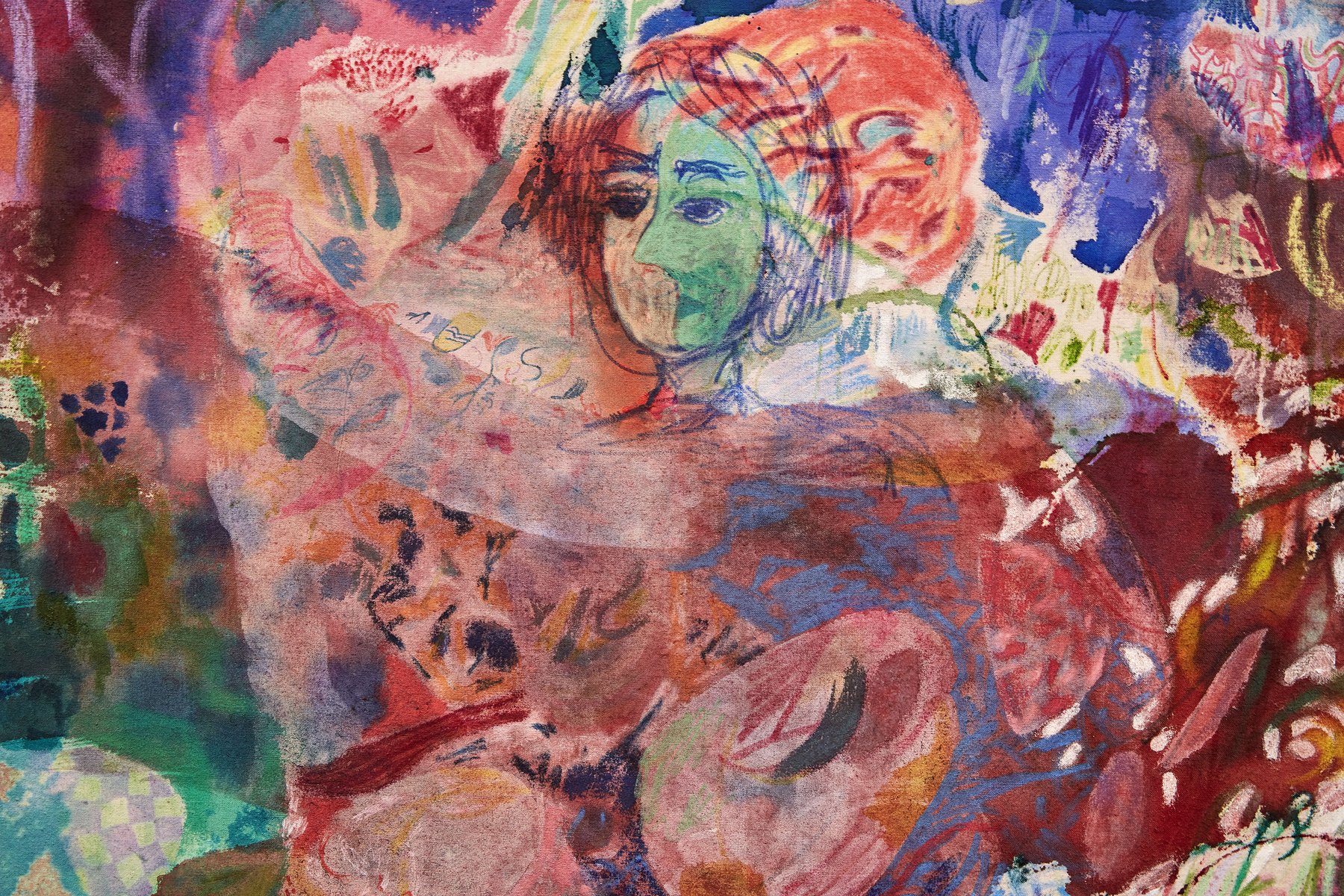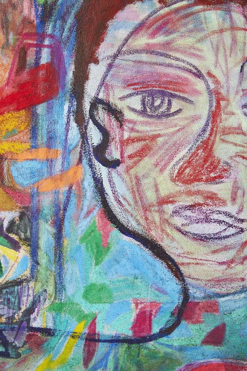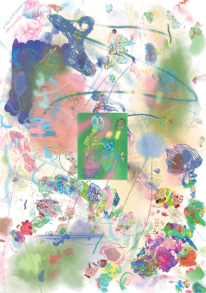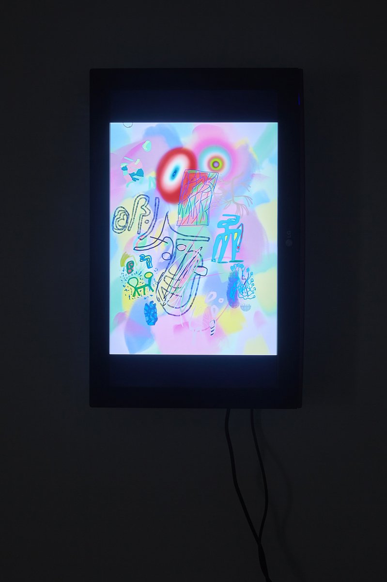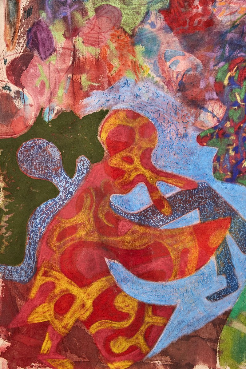 Obwohl seine Bilder einen hohen Wiedererkennungswert haben, geht es weniger um die individuelle Handschrift oder um die Kontrolle derselben. Vielmehr überlässt sich Max Brand dem Fluss der Bildzeichen, die er nicht hierarchisch strukturiert. Das bedeutet im Umkehrschluss aber nicht, dass sein Arbeitsprozess ungesteuert verläuft. Es sind bewusste Entscheidungen in Bezug auf Komposition, Farbe und Linienführung zugunsten bestimmter Formen, die auf der Oberfläche dieser Art Ursuppe malerischer Artikulation stehen bleiben dürfen und die Dynamik des Bildes antreiben oder beruhigen. Manche Figuren können ohne einander nicht sein, andere sind so luftig umschrieben, dass sie von den Welten, die sich in ihren Binnenformen tummeln, scheinbar unberührt bleiben. Einige schauen die Betrachter*innen direkt an und verweisen sie in dem Moment der Begegnung wieder auf ihre Position außerhalb des Bildraums.