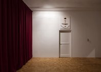 In Schwaz lässt Michele Di Menna die nüchternen Räume der Galerie durch den Einsatz von langen, dunkelroten Vorhängen warm und haptisch leuchten. Zudem zeigt sie eine Serie von Radierungen, deren Ausgangspunkt gefundene Illustrationen von Tageshoroskopen sind. Diese Illustrationen verschränken diverse Bildquellen zu deutungsoffenen Rätselbildern und fungieren quasi wie „Dienstleistungsbilder“, die für alle Projektionen offen sind.
