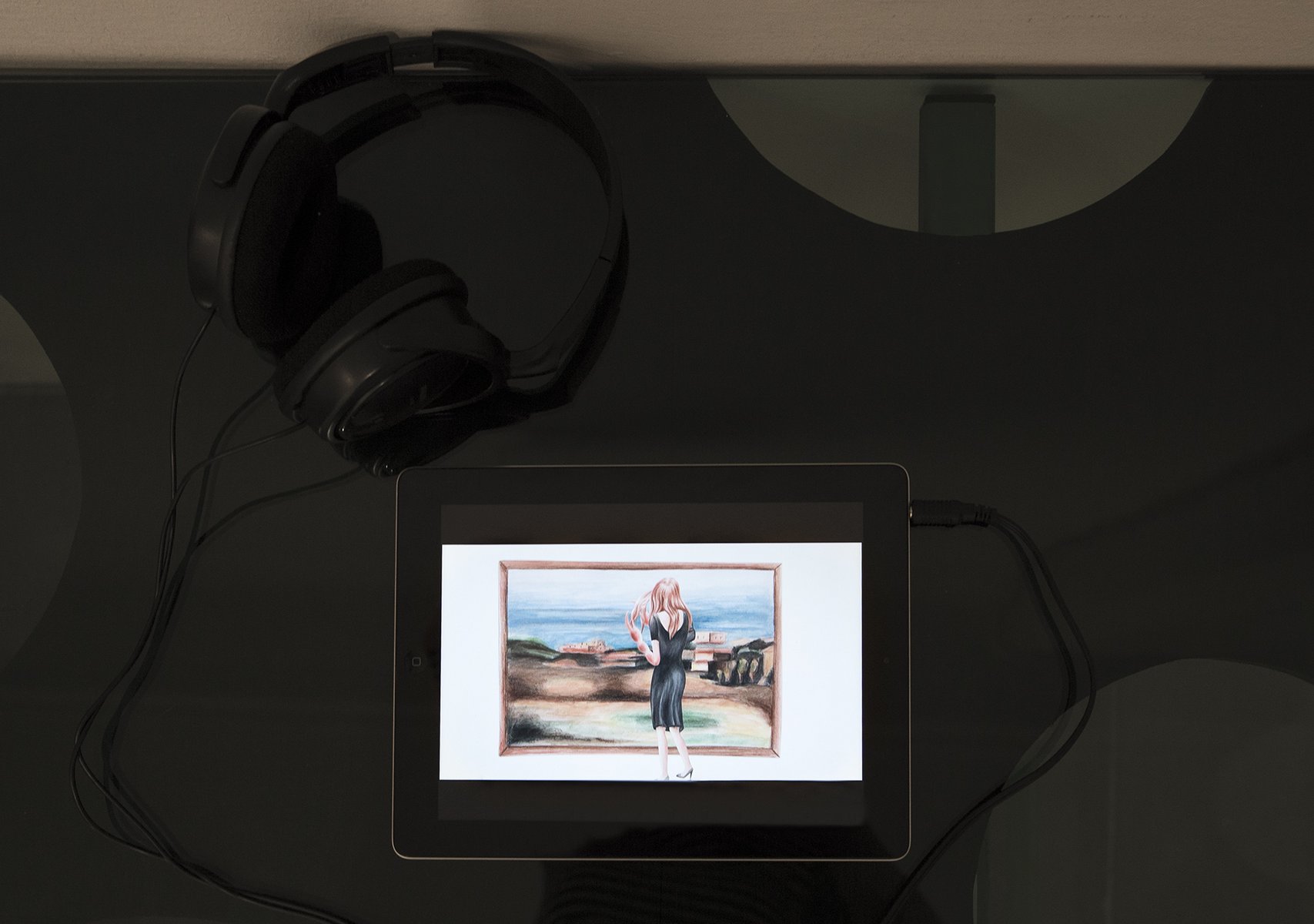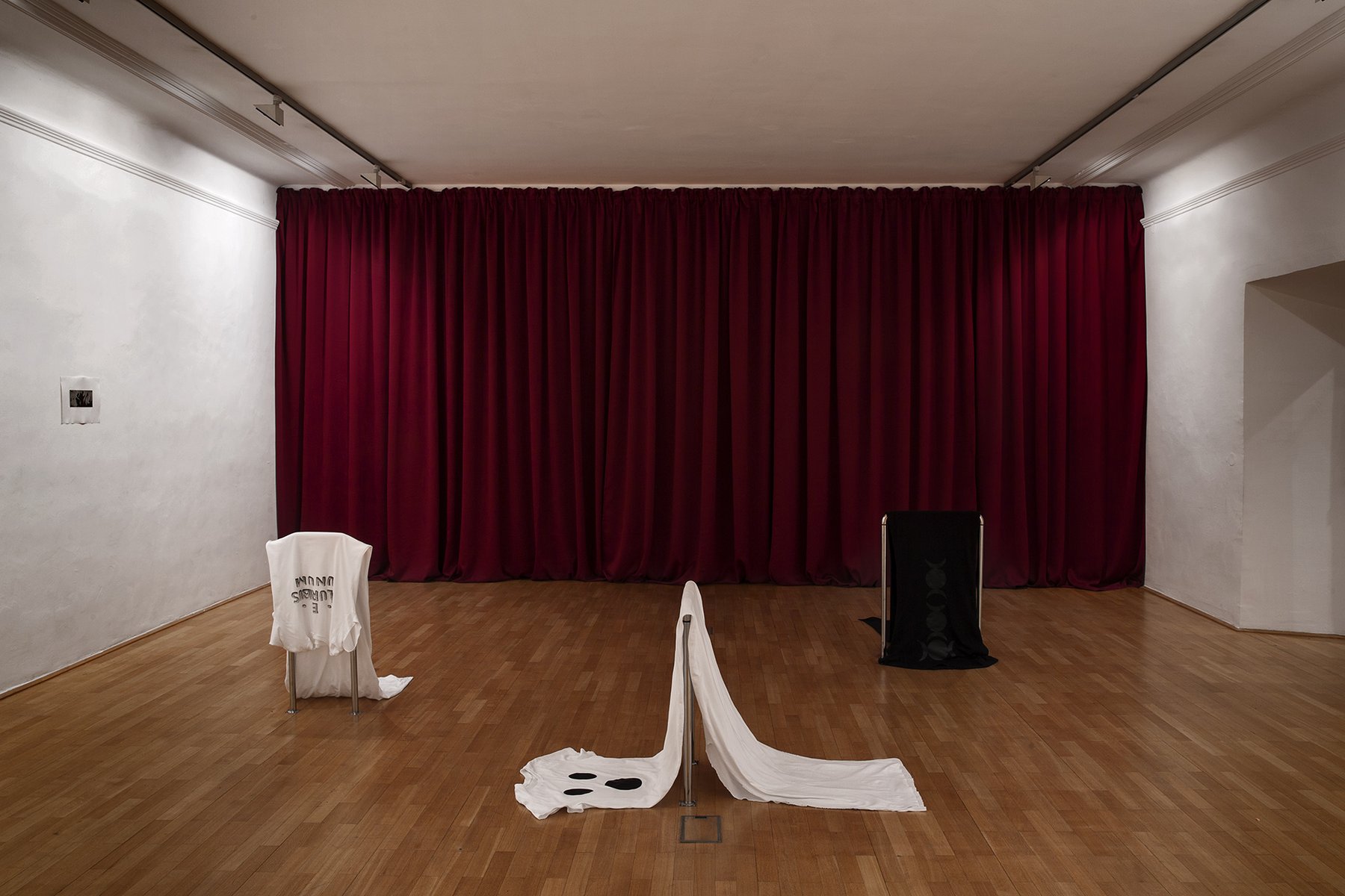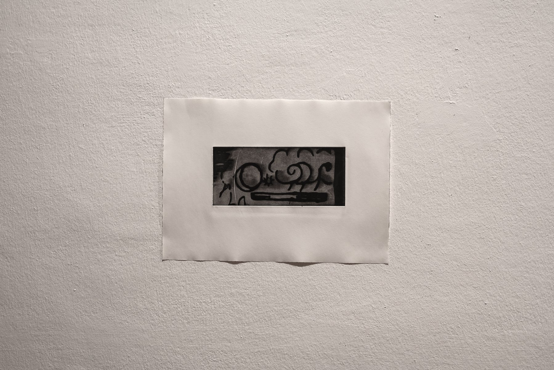 In Schwaz lässt Michele Di Menna die nüchternen Räume der Galerie durch den Einsatz von langen, dunkelroten Vorhängen warm und haptisch leuchten. Zudem zeigt sie eine Serie von Radierungen, deren Ausgangspunkt gefundene Illustrationen von Tageshoroskopen sind. Diese Illustrationen verschränken diverse Bildquellen zu deutungsoffenen Rätselbildern und fungieren quasi wie „Dienstleistungsbilder“, die für alle Projektionen offen sind.