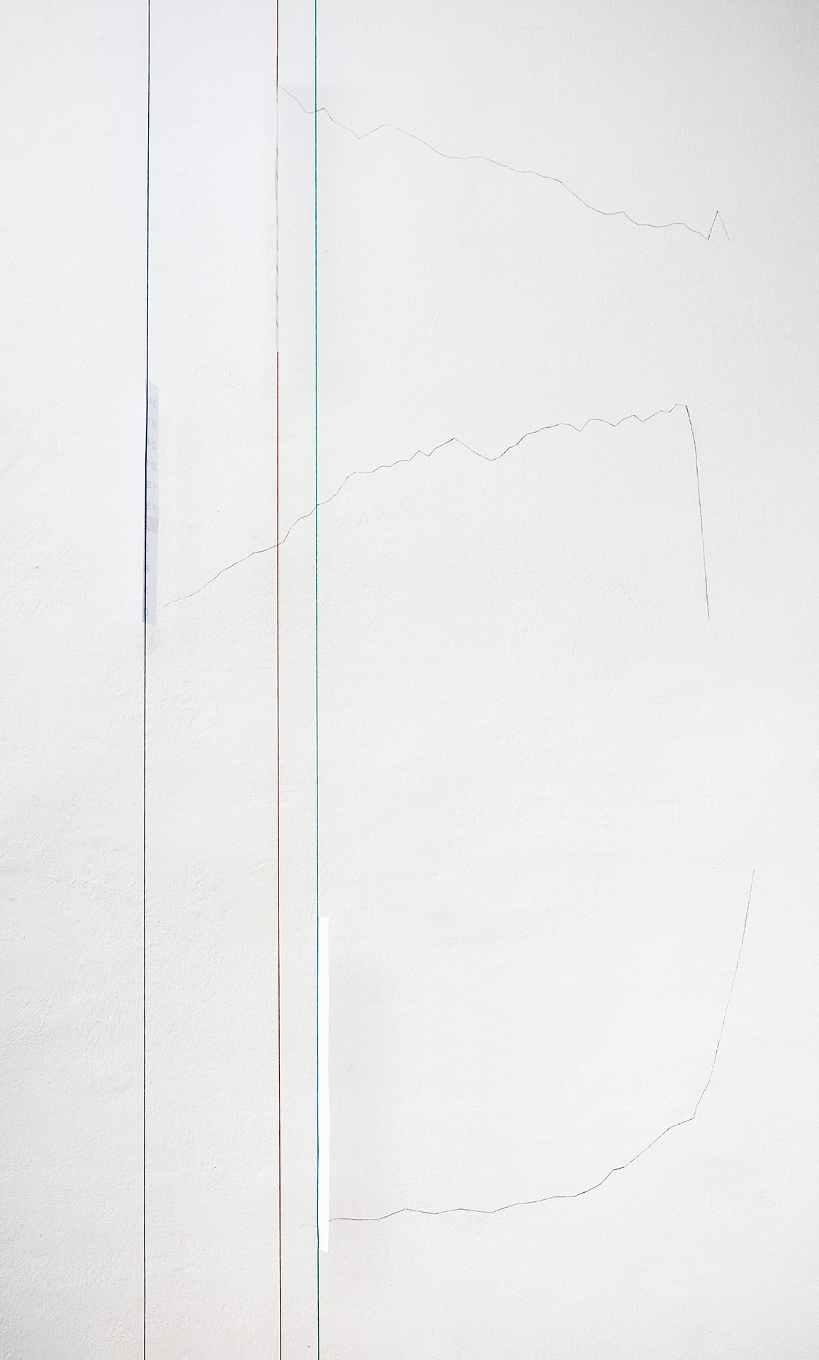Im großen Raum befindet sich eine Silberstiftzeichnung auf Transparentpapier, angefertigt von Quirin Bäumler für die Ausstellung Das Potosí Prinzip von 2010. Diese funktioniert wie ein Raumteiler. Wird der Raum von Westen her betreten, schafft das Bild einen schmalen Gang, an dessen einen Seite das Transparent aus nächster Nähe betrachtet werden kann, während an der gegenüberliegenden Wand eine Timeline aus Statistiken zu sehen ist. Diese sind wie feine Haarrisse an die Wand gezeichnet. Ein Synonym dafür, dass die Welt rissig ist, unbeständig. An Bändern, die von der Wand hängen, können die dazugehörigen Informationen abgelesen werden.