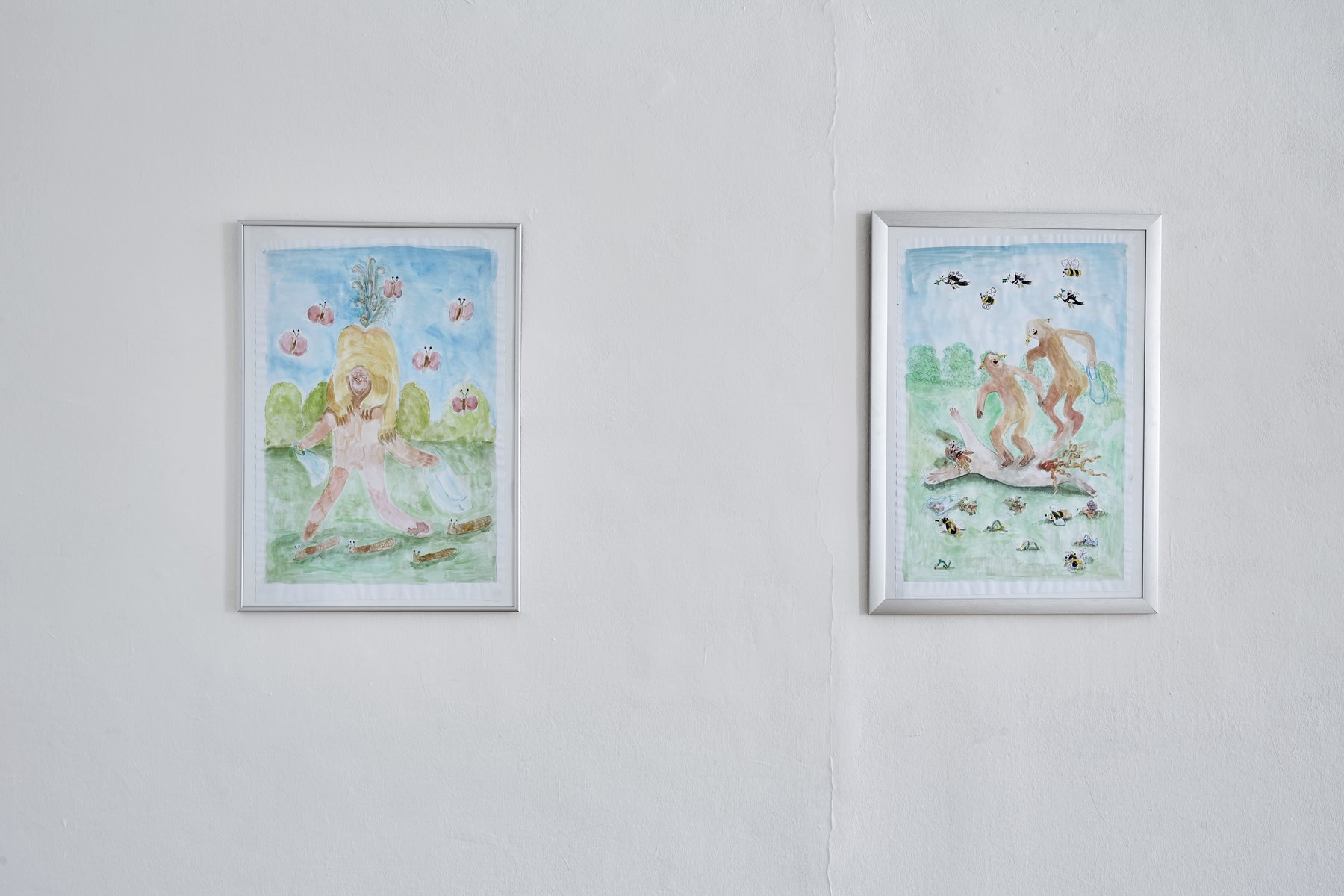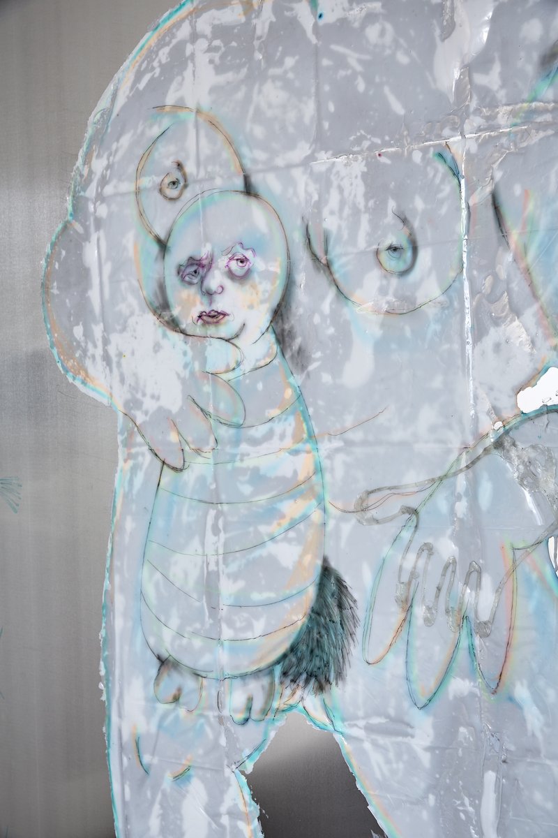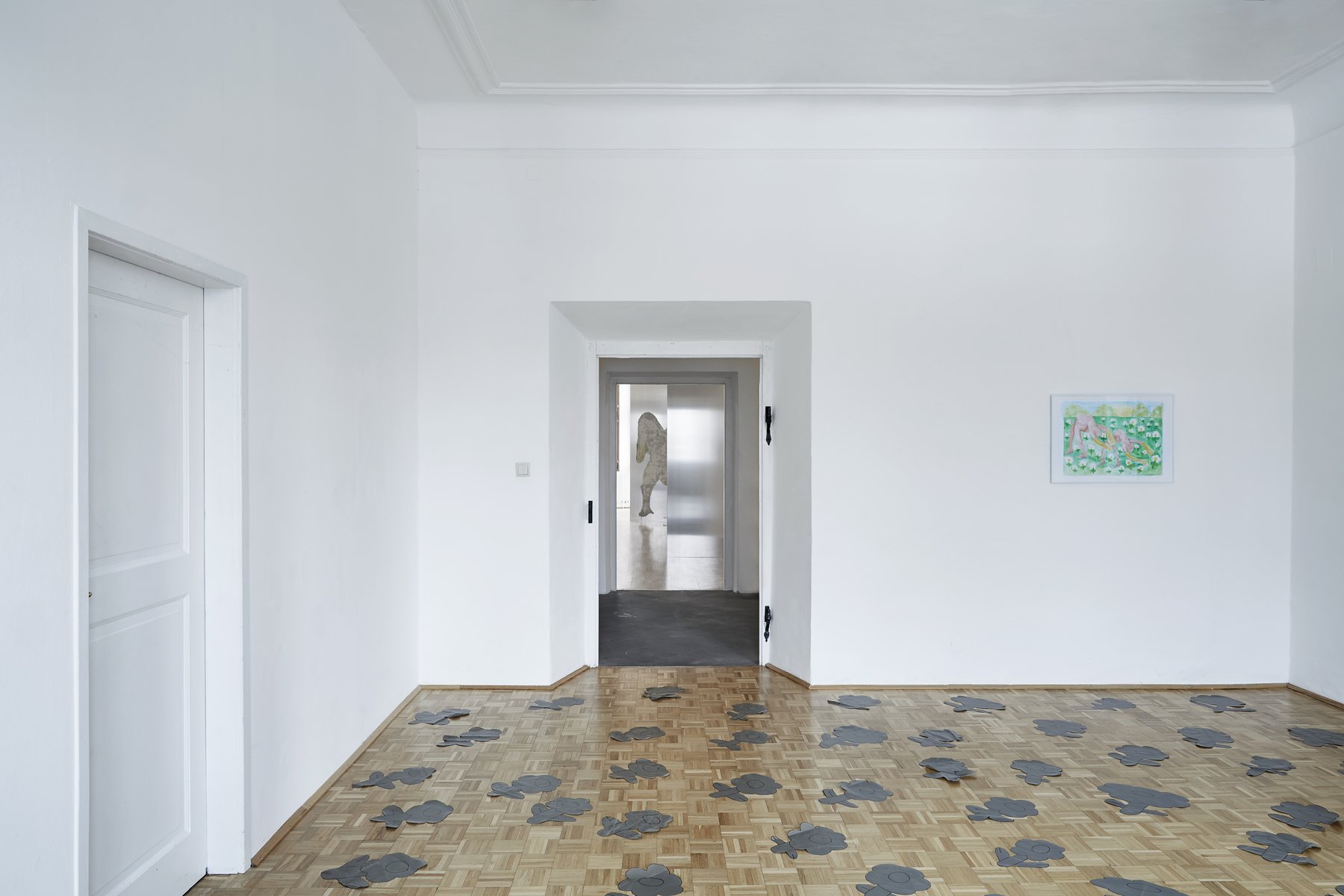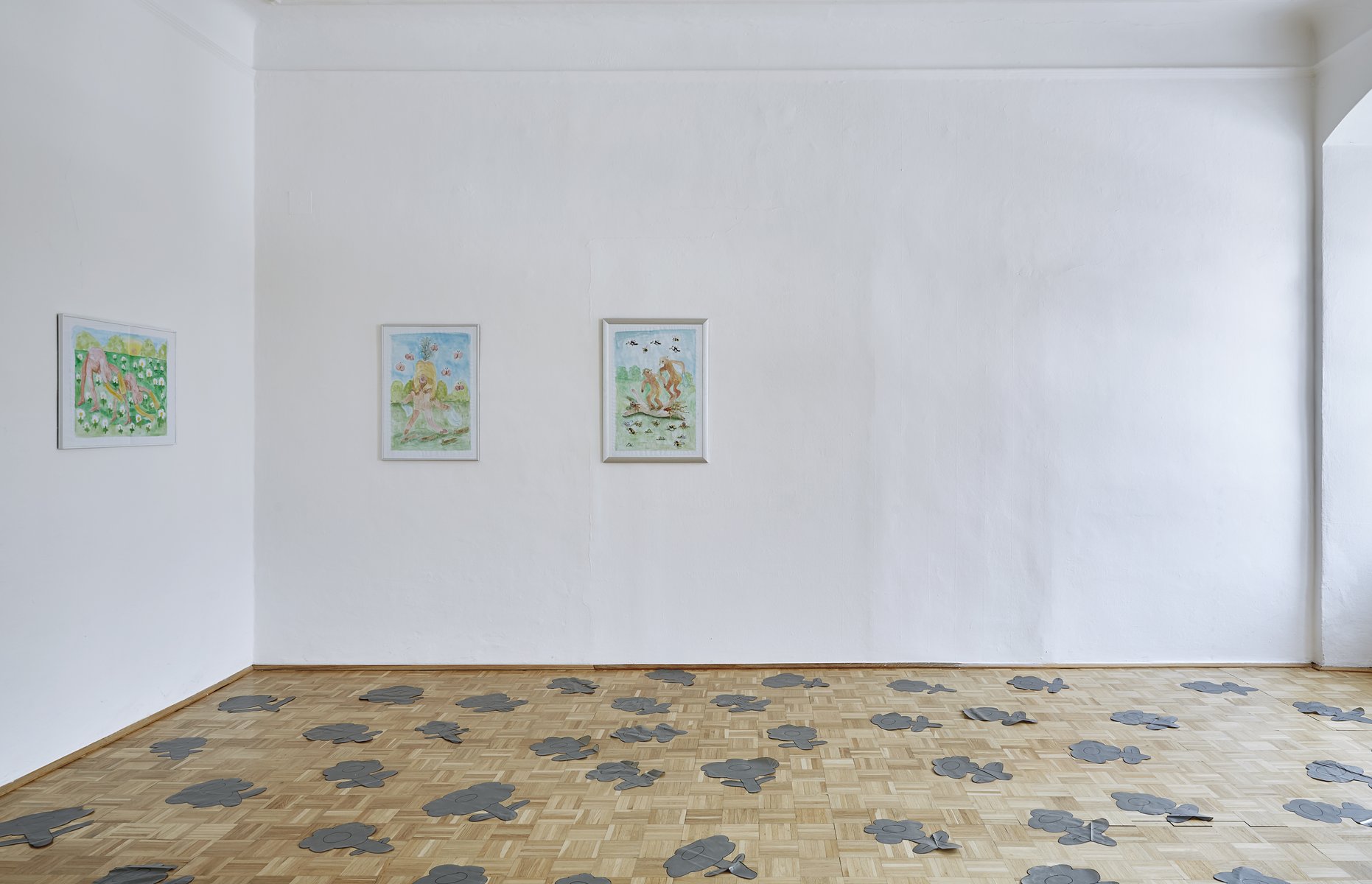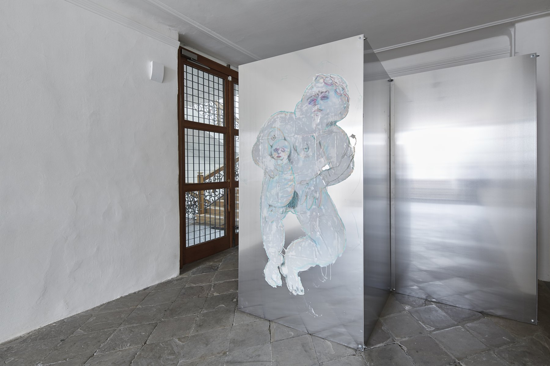 Unter dem Titel "the garden, some leftovers, and us swaying" zeigt sie eine eigens für die Galerie der Stadt Schwaz konzipierte Rauminstallation, in der grotesk fantastische Wesen, Hybride aus Holzleim und Farbe auf überlebensgroßen Aluminiumplatten die Galerieräume bevölkern. Durch die räumliche Intervention mit leicht spiegelnden Aluminiumplatten arbeitet sie direkt mit der Raumwahrnehmung der BetrachterInnen und versetzt sie ins Schwanken.