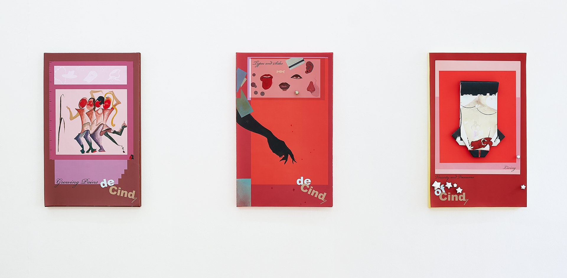 Dahinter und an den Rändern kommen die echten Körper zum Vorschein, die Nutzerinnen und die Nutzung. Die Props und Objekte, die Yoon zu, auf und in ihren Bildern platziert, erzählen keine schlüssige Geschichte, auch wenn Teile von Geschichten auch Teile von ihren Bildern sind. Farbepalette, Typographie und Text deuten dagegen eine gemeinsame Grundlage an und vermischen so, wann immer möglich, Ursache und Wirkung.