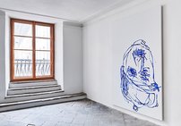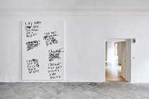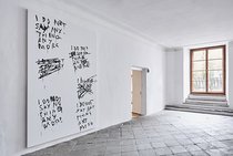 Indem Stefan Sandner die BetrachterInnen zugleich als LeserInnen adressiert, zelebriert er ein gekonntes Spiel mit Ironie und Witz, in dem die Betrachtung der Malerei als scheinbar Nebensächliches in Erscheinung tritt. Die riesigen Leinwand-Formate, die in ihren Dimensionen an die bedeutungsvolle Historienmalerei des 19. Jahrhunderts anknüpfen, stehen im absurden Gegensatz zu der Nichtigkeit der Informationen und der gekritzelten Form, in der sie notiert und gezeichnet sind. Der Pinsel wird zum Schreiben eingesetzt und mit der gewählten wässrigen Acrylfarbe hinterlässt Sandner oft Rinnspuren, die zum rhetorischen Vokabular und Pathos der abstrakten Malerei gehören.