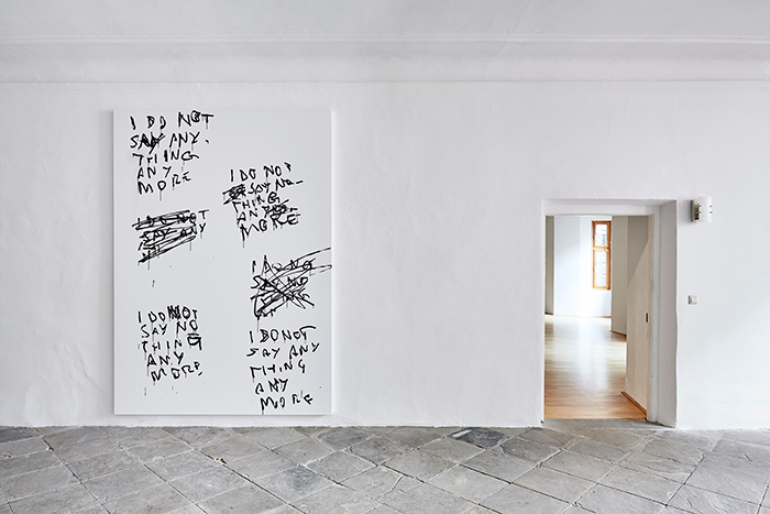 Stefan Sandner setzt an mehreren Hebeln an, wenn er sich mit der Malerei und ihrer Geschichte auseinandersetzt. In Form von Gekritzel, Notizen, einem Spiel mit den Codes von Pinselstrich, Farbauftrag und Leinwandform sowie in gestischen Kürzeln verhandeln seine Bilder wesentliche Pathosformeln der Malereigeschichte. Gerade in der „Königsdisziplin“ der Malerei tauchen Kategorien wie Autorschaft, Subjektivierung, Expression, Repräsentation sowohl in einem vormodernen wie auch in einem reflexiven Zugang immer wieder auf. Im Sinne der Moderne und ihrer nachfolgenden Diskurse operiert Sandner mit Fragen zur Analyse der eigenen Funktion. Die sogenannten Gegner eines selbstkritischen Blicks auf die Kunst entpuppen sich dabei als hartnäckige Widersacher, die kaum zu Boden gerungen, wieder aufstehen und erneut mit Aura aufgeladen werden. Im Sinne eines „Die harder“ gibt es so immer genug Stoff für weitere Reflexionen, Kampfszenen und Meta-Malereien, die das „sich-selbst-problematisch-werden“ der ästhetischen Grundbegriffe weiterführen.