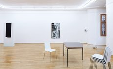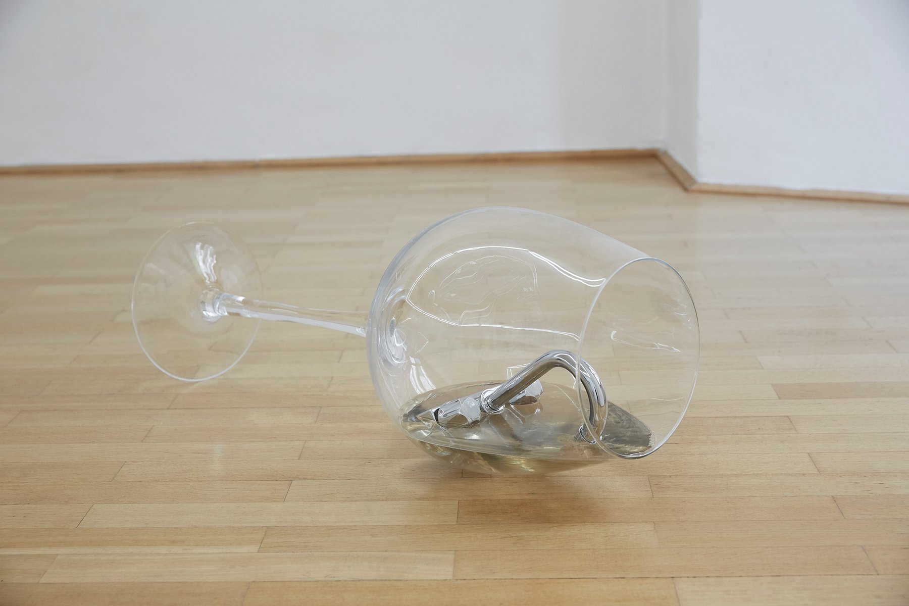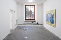 Weit entfernt im Hintergrund die digitale Gegenwart: Verbundenheit von Objekten, zunehmend autonome Dinge, Maschinen generieren Bilder für Maschinen – der Mensch kippt aus dem beschleunigten Kreislauf sprachlicher und visueller Bedeutungsproduktion. Mit Blick darauf präsentiert sich die Ausstellung als ein Szenario der Entfremdung, das uns an merkwürdige Abendveranstaltungen erinnert: Die meisten kennen und unterhalten sich, nur wir nicht. Schwer zugängliche Arbeiten treten in einen Zusammenhang, der sich uns entzieht. Das Publikum wird zum Randpersonal, die Notwendigkeit seiner Präsenz hat sich erübrigt. Jetzt, im Schatten der Geschehnisse, beginnt die ungestörte Beobachtung. Drinks.