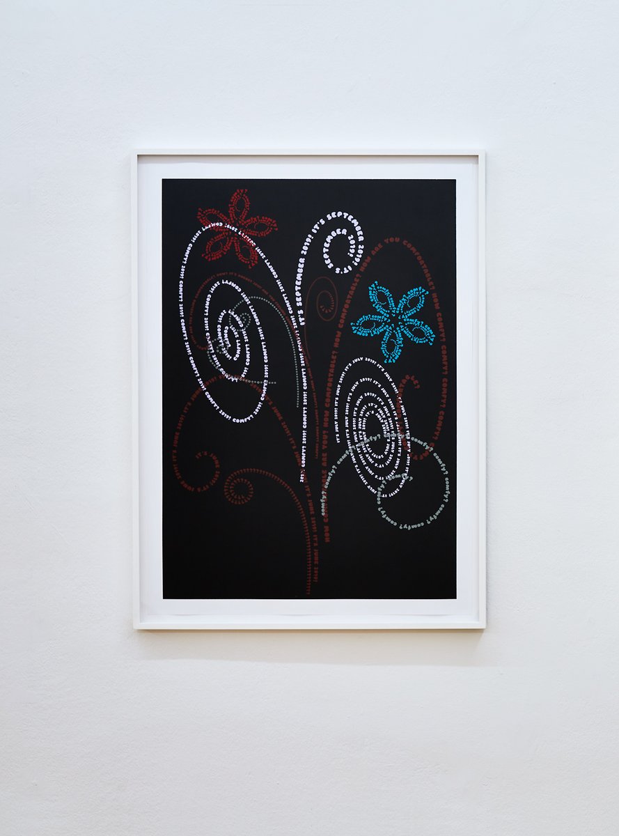 Eine Ausstellung über unklare Verbindungen, die uns nicht braucht. Über Deplatzierung, Sprachlosigkeit, Small Talk, One-Liners, Missverstehen, Selbstreferenz und die Befreiung von der Autorität.